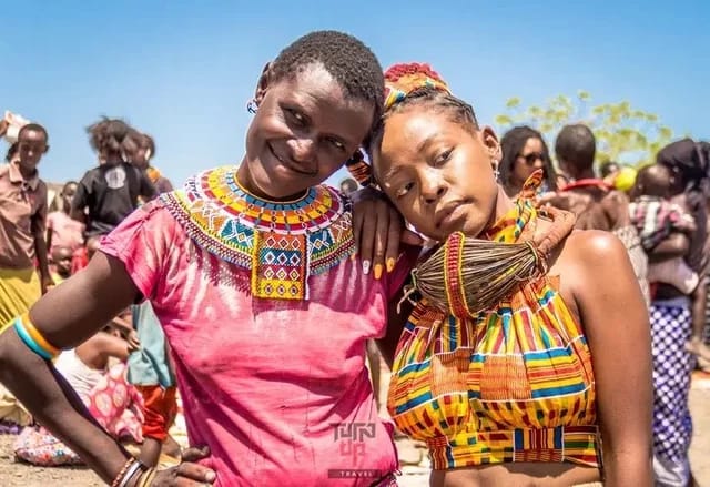 They dress following Samburu custom- beads and goat or fish skins, incorporating many of the lake artifacts such as fish bones and teeth.